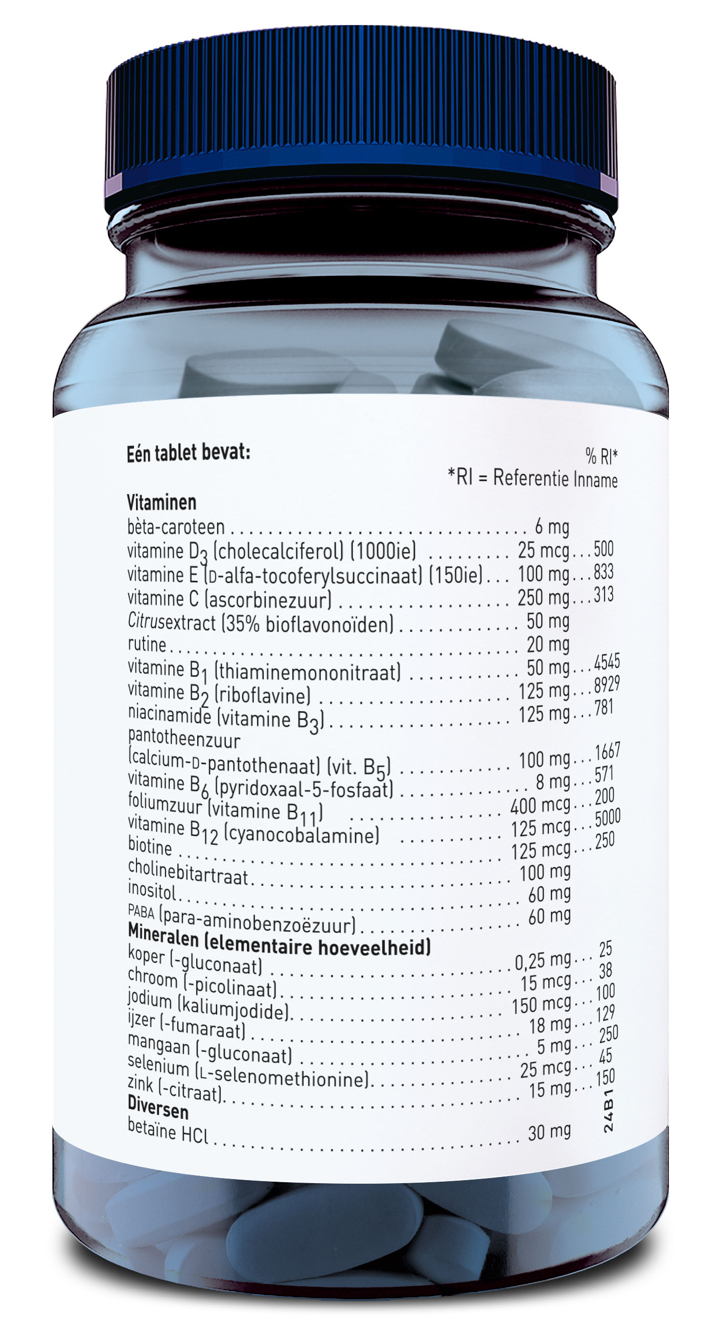 | Samenstelling per dagdosering van 1 tablet: | %RI* | |