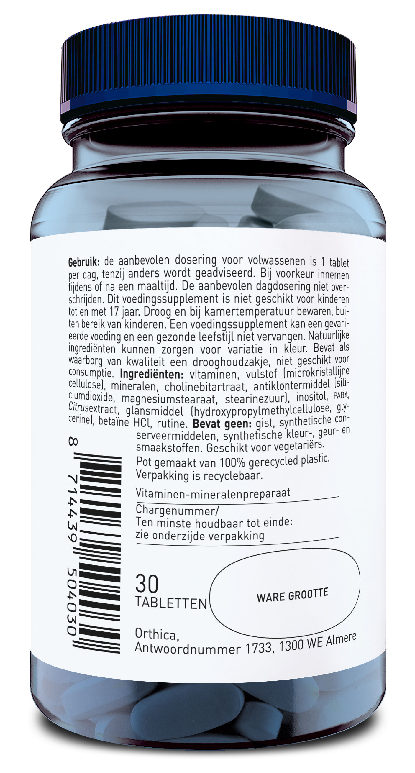 Een gevarieerde, evenwichtige voeding en een gezonde levensstijl zijn belangrijk. Een voedingssupplement is geen vervanging van een gevarieerde voeding.