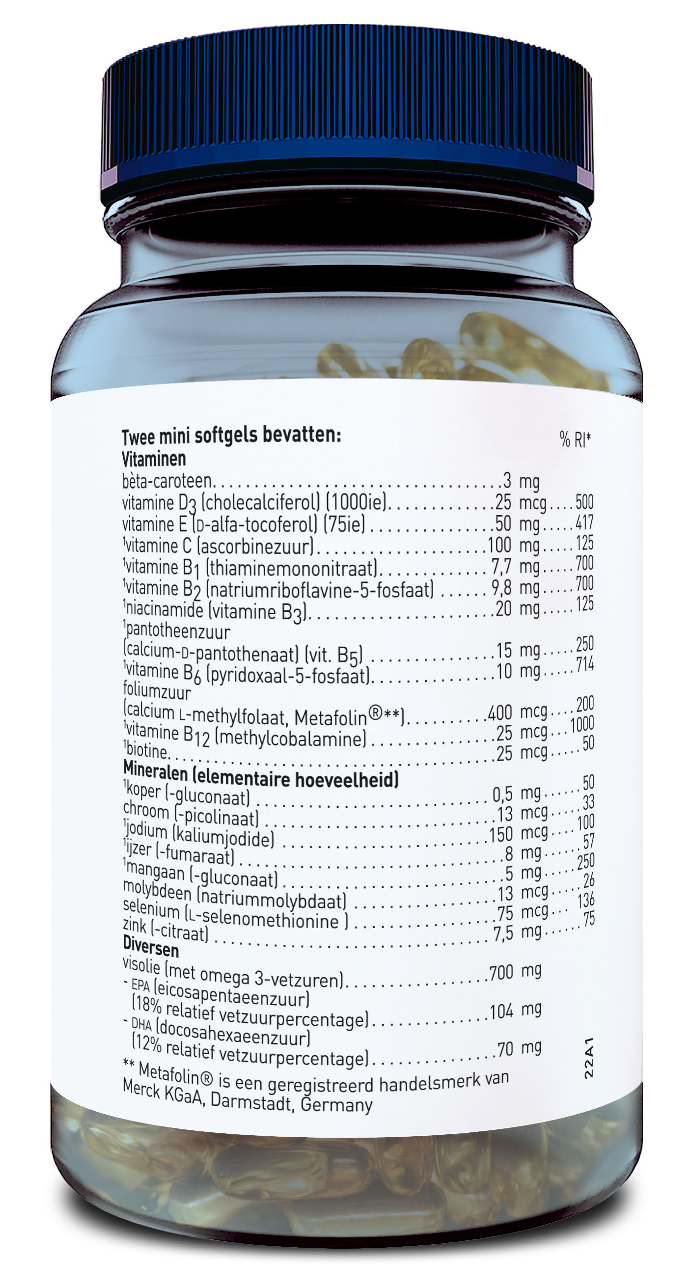 Een gevarieerde, evenwichtige voeding en een gezonde levensstijl zijn belangrijk. Een voedingssupplement is geen vervanging van een gevarieerde voeding.