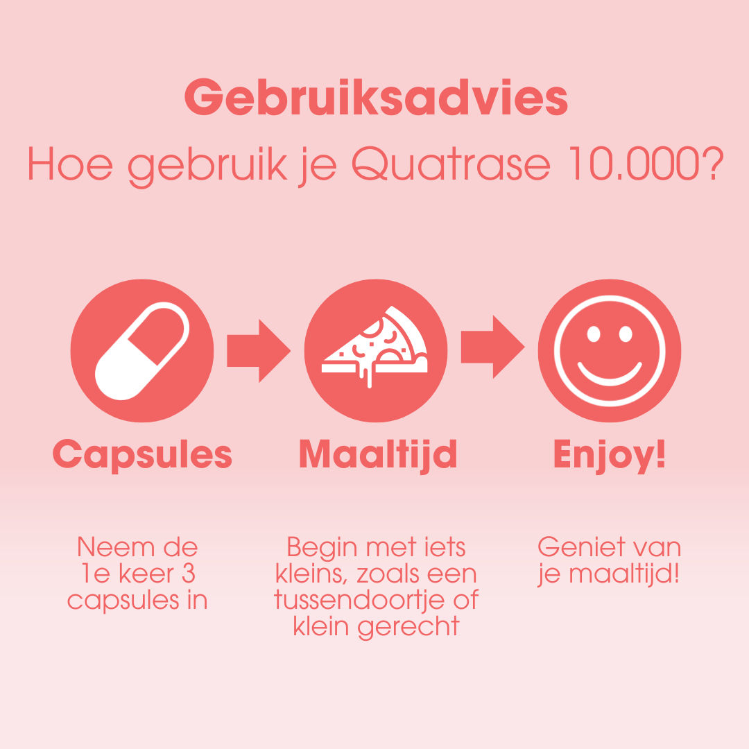 1 tot 3 capsules innemen vlak voor elke lactose en/of complexe koolhydraten bevattende maaltijd. Maximaal 15 capsules per dag gebruiken. Bij slikklachten open de capsule en neem alleen het poeder in.