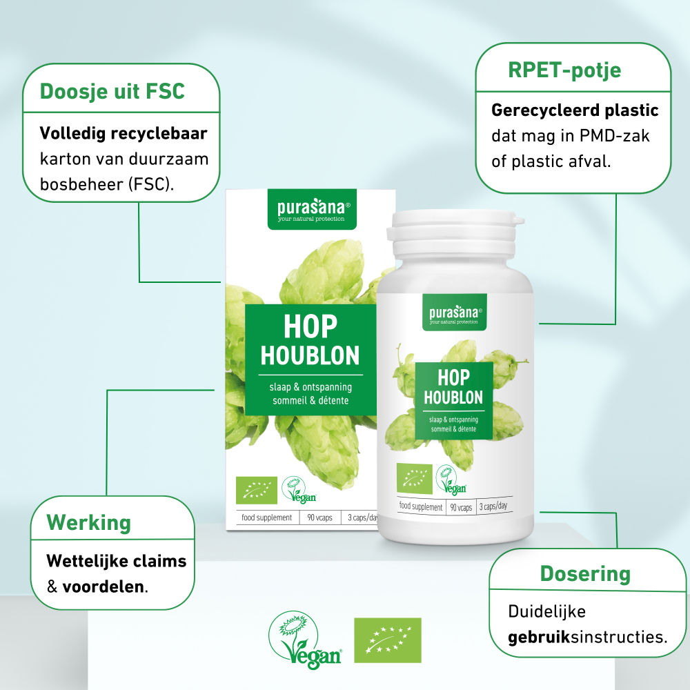Hop* (hopkegel), hydroxypropylmethylcellulose (capsule).