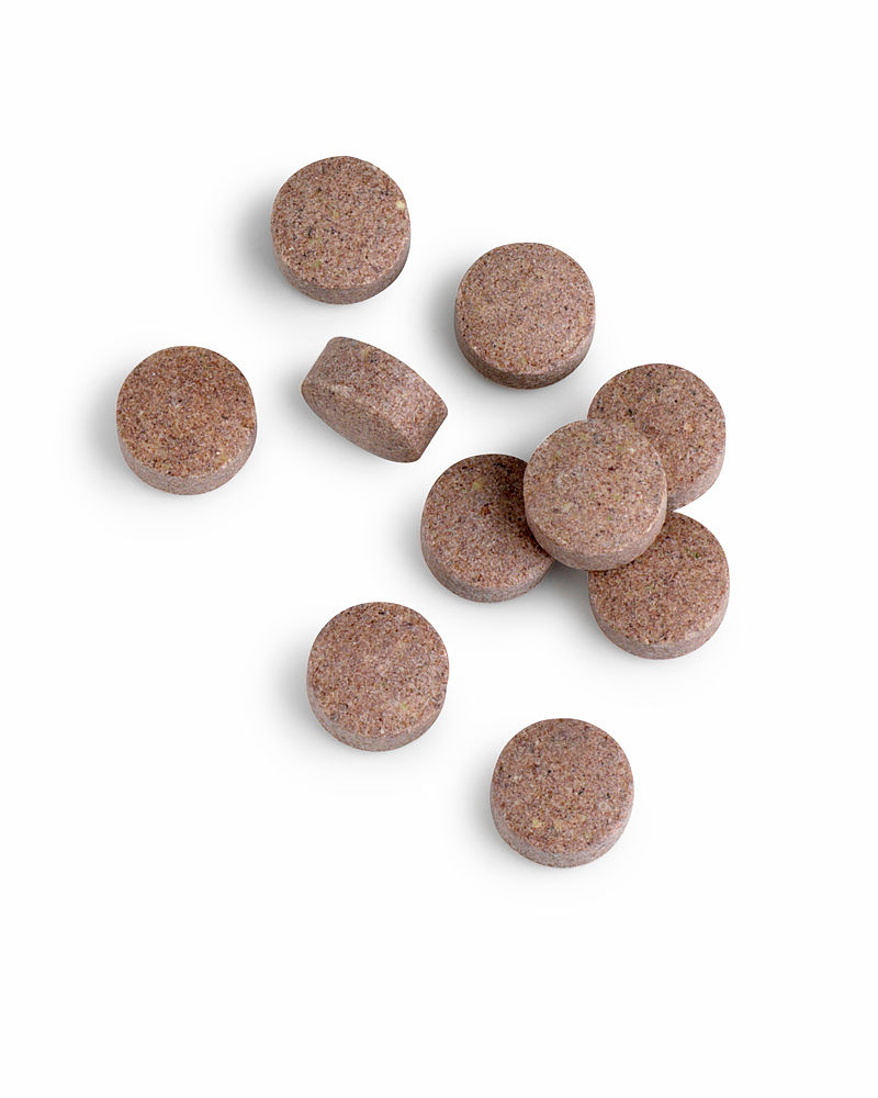 Erwtenmengsel (Pisum sativum: actiVbase®, Vulstof: microkristallijne cellulose, Bietenconcentraat, Stabilisant: stearinezuur, Pancreaslipase, Antiklontermiddel: magnesiumstearaat, Glansmiddel: schellak