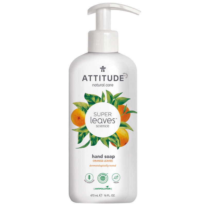 ATTITUDE Super leaves™ natuurlijke handzeep reinigt efficiënt je handen waarbij ze zacht blijven en gehydrateerd worden. De formule bevat extracten van sinaasappelbladeren en moringazaad, bekend om zijn reinigende eigenschappen. De vloeibare handzeep is EWG VERIFIED™, dermatologisch getest, vegan gecertificeerd en is gemaakt van plantaardige en minerale ingrediënten. Geniet van het natuurlijke aroma dat doet denken aan sinaasappel en kardemom!