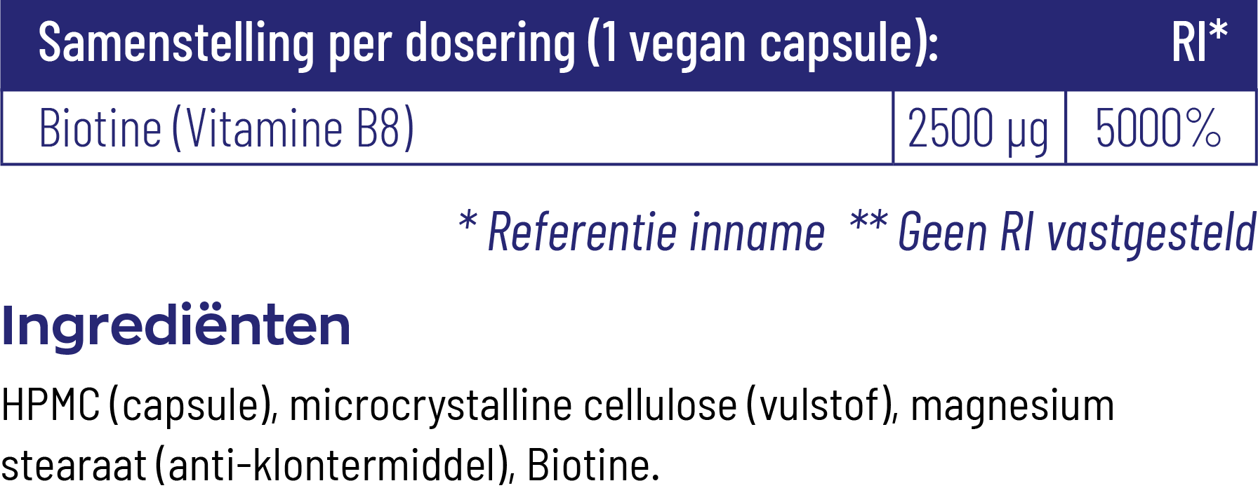 Biotine (Vitamine B8) | 2500 mcg | 5000% |