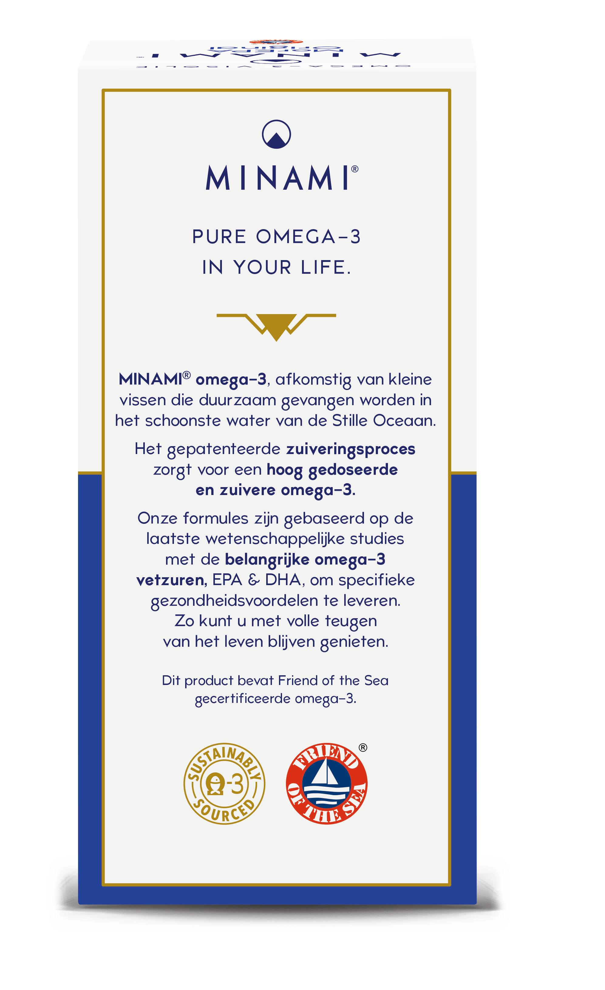 Minami omega-3, afkomstig van kleine vissen die duurzaam gevangen worden in het schoonste water van de Stille Oceaan.