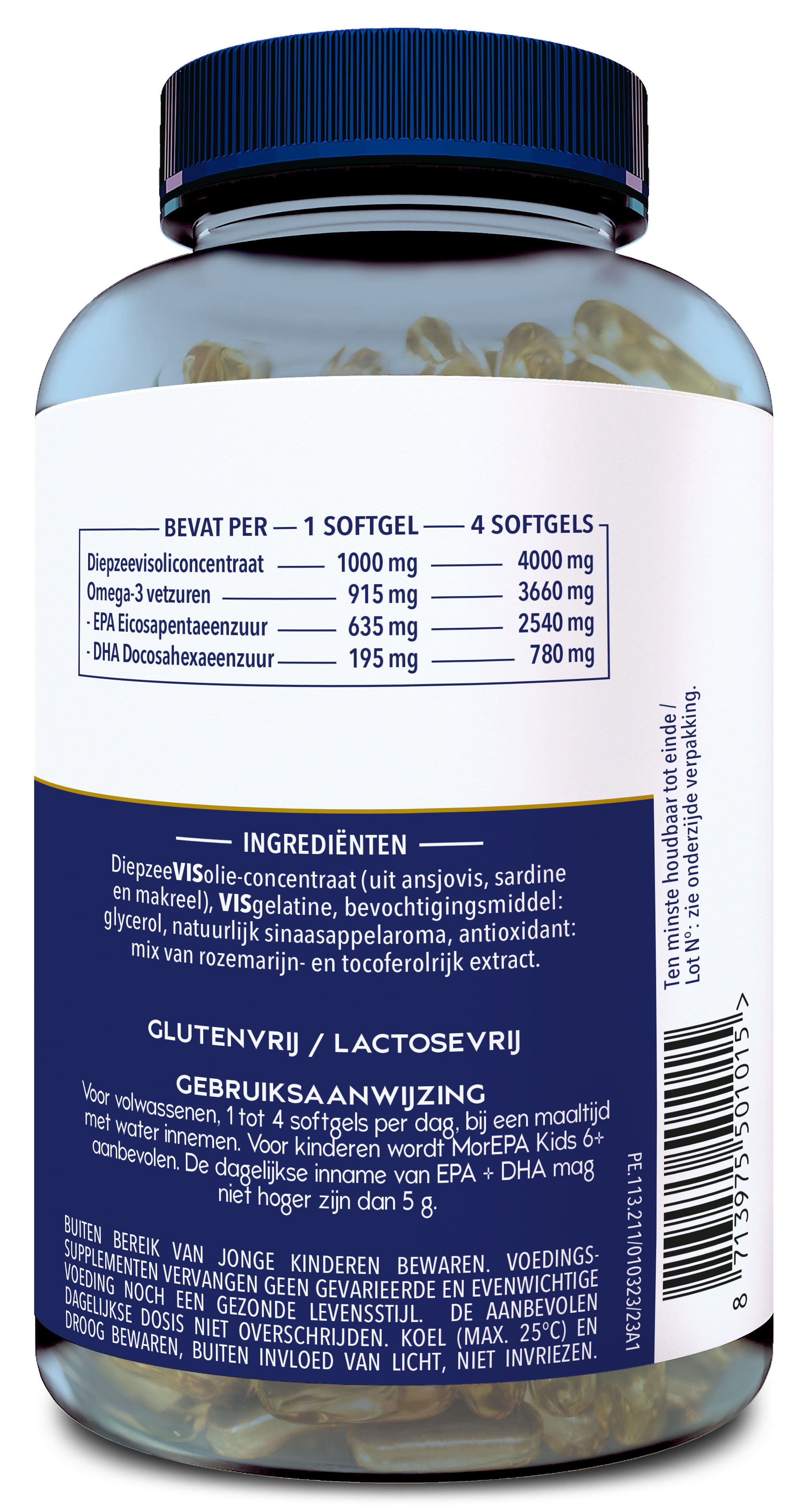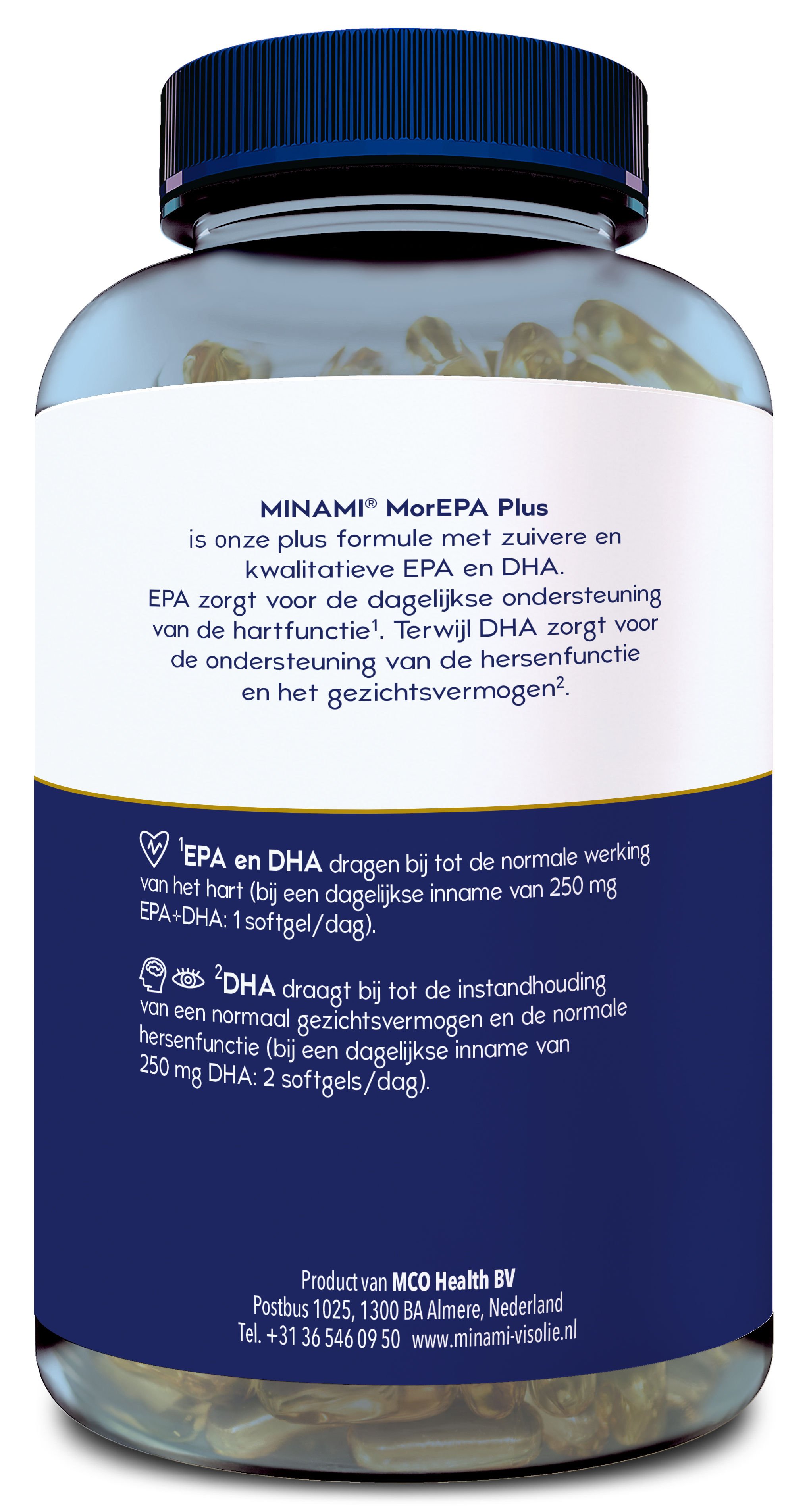 - De belangrijke omega-3 vetzuren, dragen bij tot de normale werking van het hart (bij een dagelijkse inname van 250 mg EPA+DHA: 1 softgel/dag).