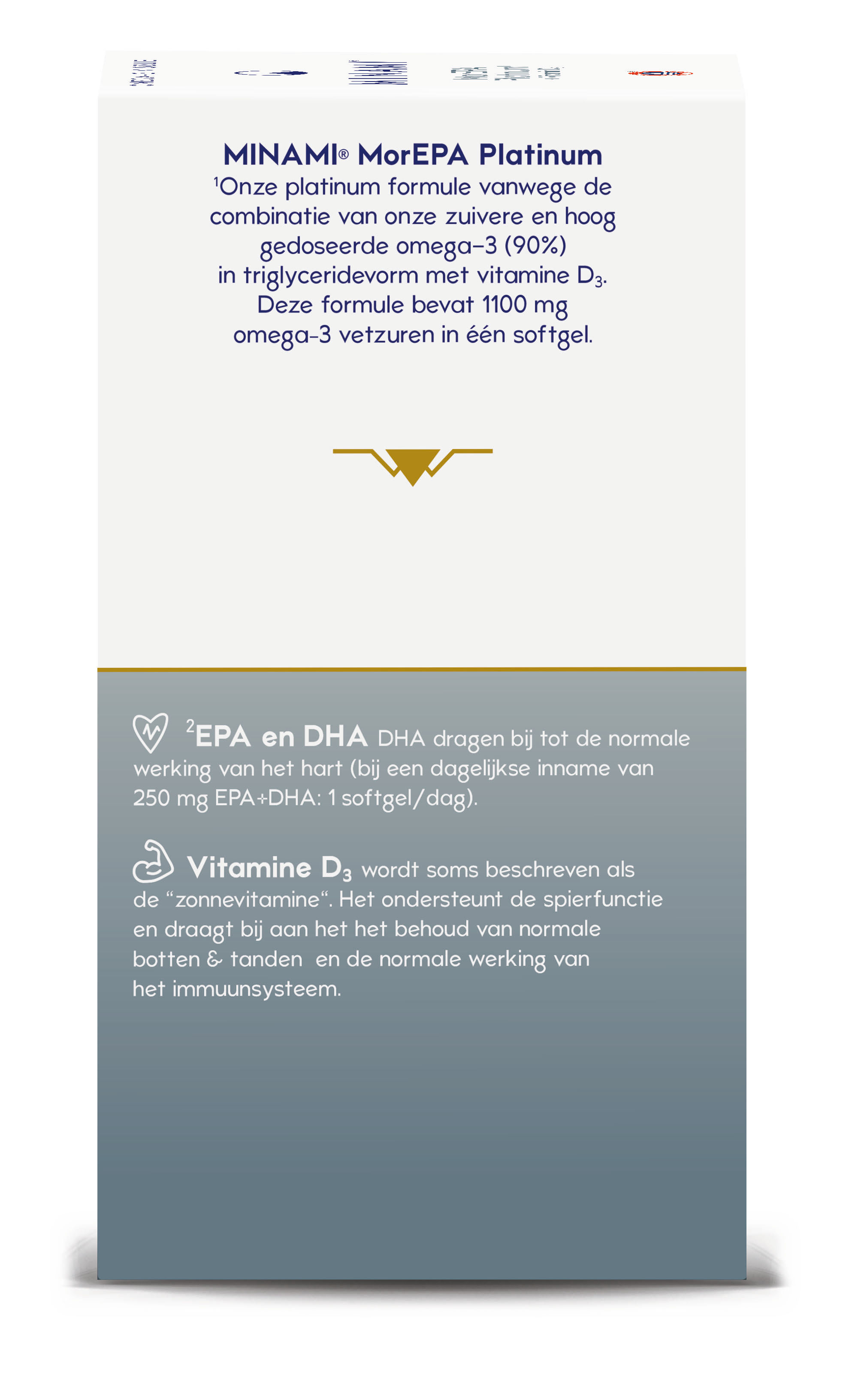 DHA dragen bij tot de normale werking van het hart (bij een dagelijkse inname van 250 mg EPA+DHA: 1 softgel/dag).