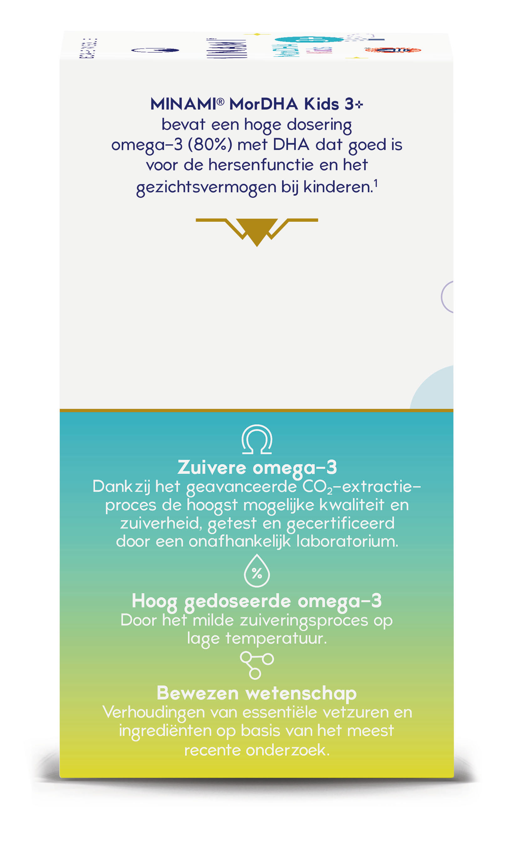 MorDHA Mini is speciaal ontwikkeld voor kinderen vanaf 3 jaar en daarom beschikbaar in een zeer kleine softgelcapsule. Met 1 softgel per dag krijgt een kind 250 mg DHA binnen. MorDHA Mini is ook geschikt voor volwassenen die moeite hebben met het slikken van grotere softgels.