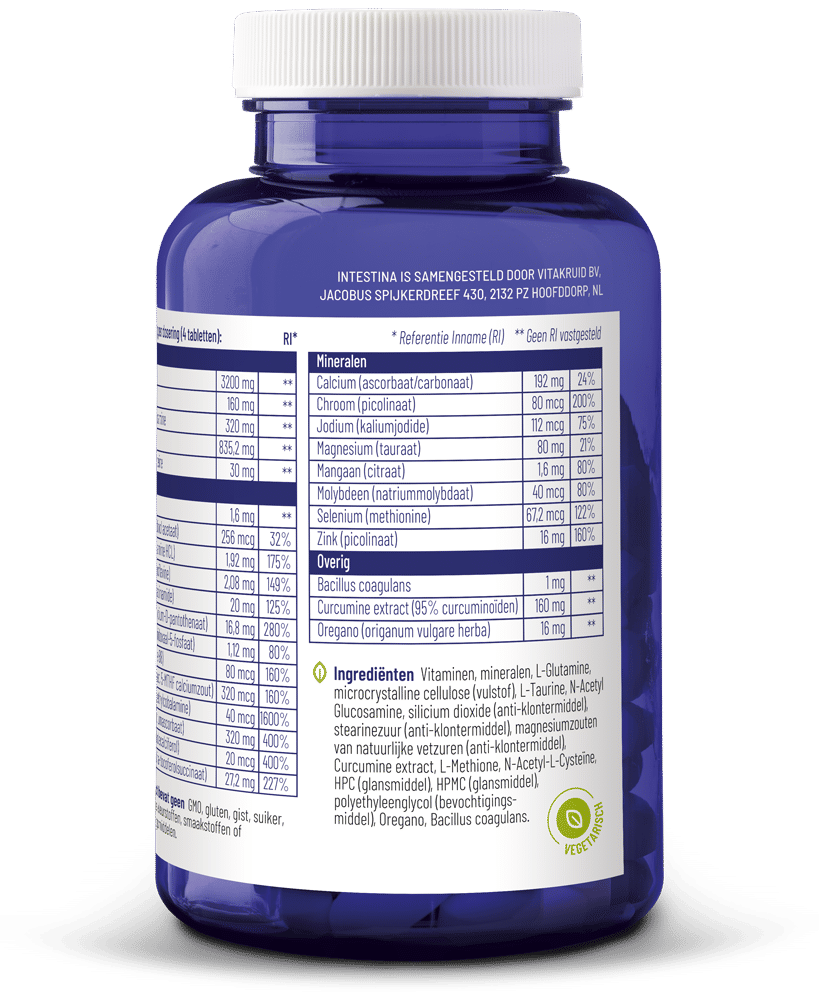 Intestina is een uitgebalanceerde formule met vitaminen, mineralen, aminozuren, probiotica, kruiden en vetzuren. Dankzij deze diverse samenstelling kan het complex op verschillende manieren worden ingezet.