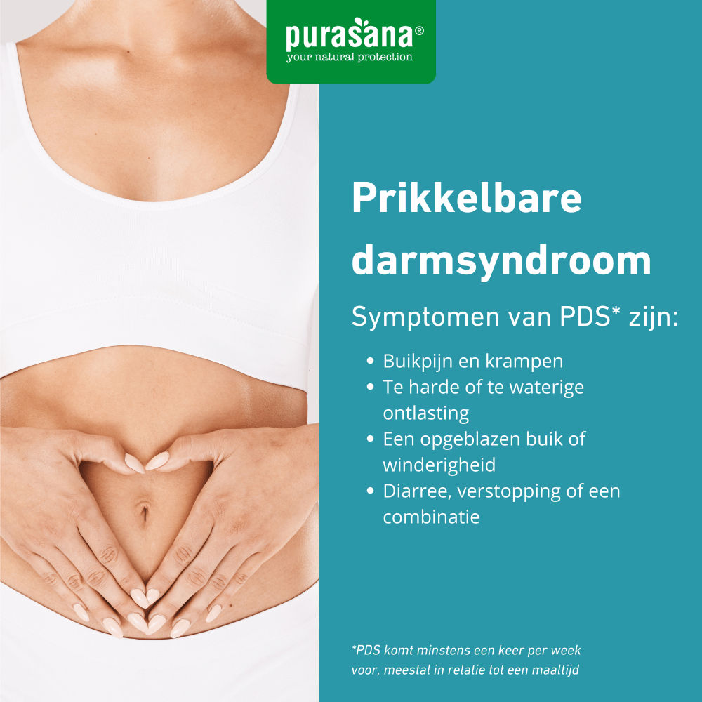 PuraColon Prov verlicht symptonen van Prikkelbaar Darm Syndroom, namelijk een opgeblazen gevoel, buikpijn, diaree en/of obstipatie.
