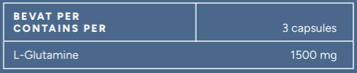L-Glutamine poeder, HPMC vegetarische capsule (huls), Nu-Flow (anti-klontermiddel).