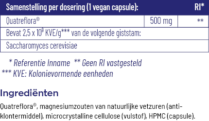 In Nederland is Symflora® Femme de eerste probiotica met Quatreflora™. Quatreflora™ is geproduceerd uit de gepatenteerde stam Saccharomyces cerevisiae CNCM I-3856. Deze unieke probiotische gist is ontwikkeld volgens de nieuwste wetenschappelijke inzichten en is klinisch onderzocht.