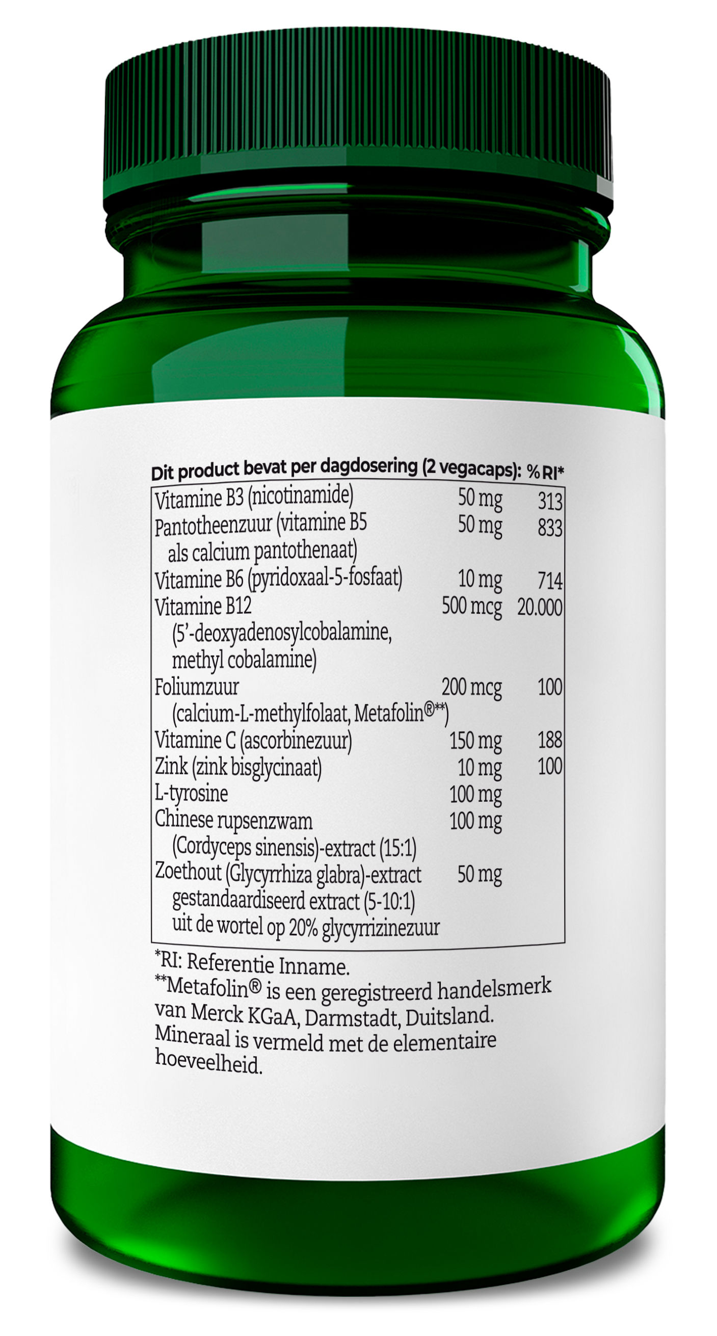 - Met vitamine B3, B5, B6, B12 en C ter ondersteuning van het energieniveau