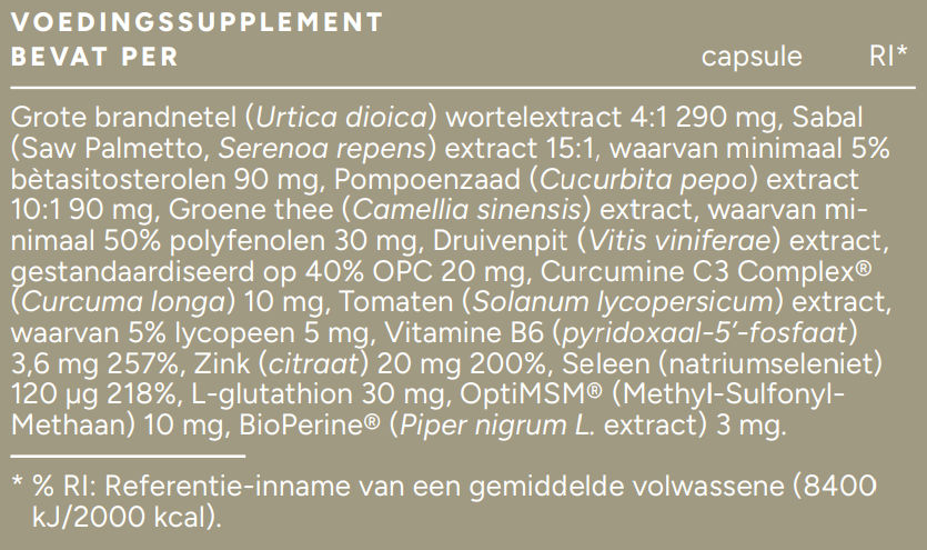 - Pompoenzaadextract draagt bij aan het behoud van een goede prostaatfunctie**.