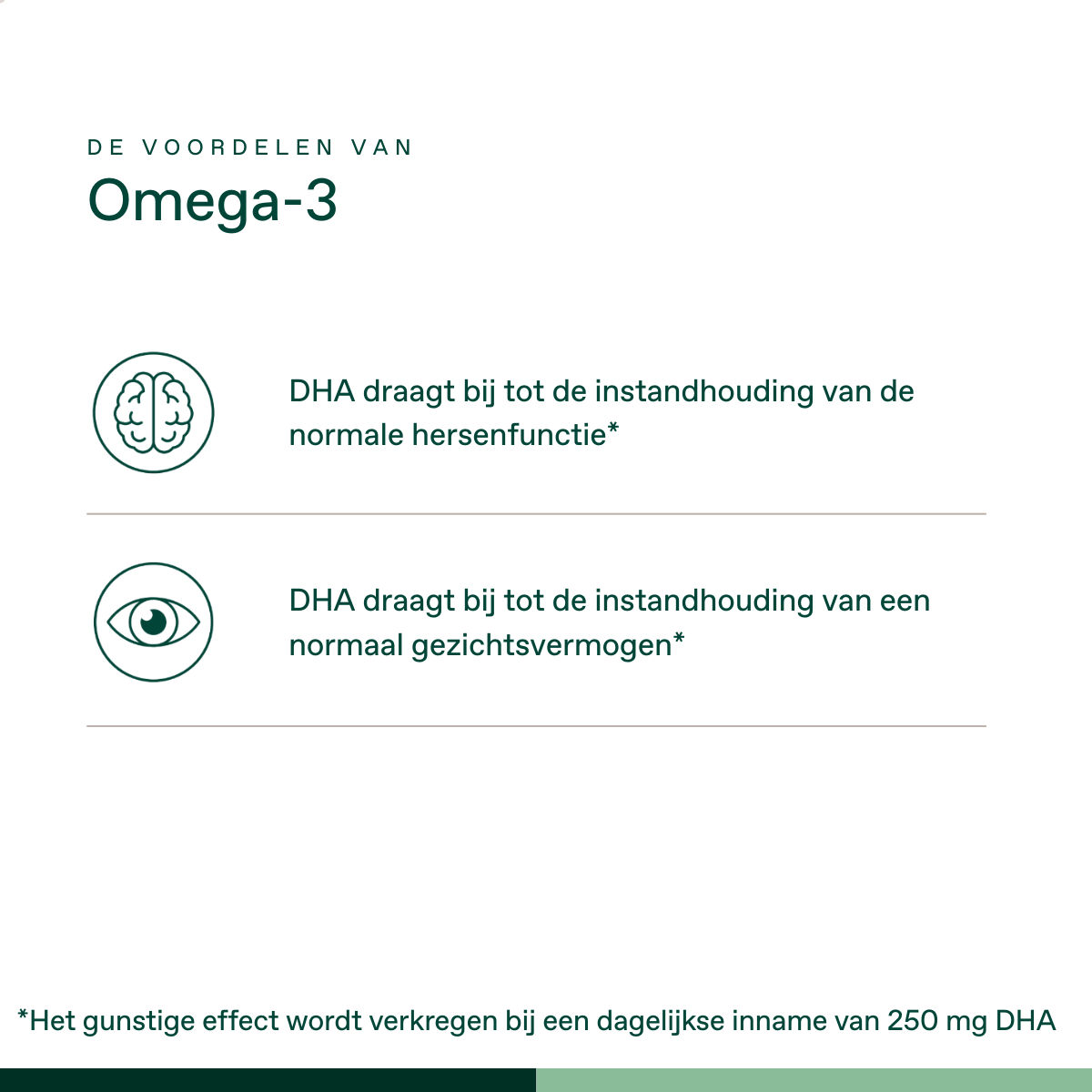 DHA draagt bij tot de instandhouding van de normale hersenfunctie en bij een normaal gezichtsvermogen.