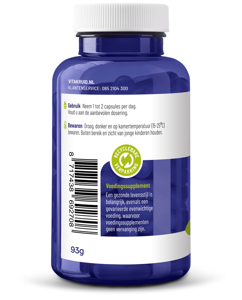 Een gevarieerde, evenwichtige voeding en een gezonde levensstijl zijn belangrijk. Een voedingssupplement is geen vervanging van een gevarieerde voeding.