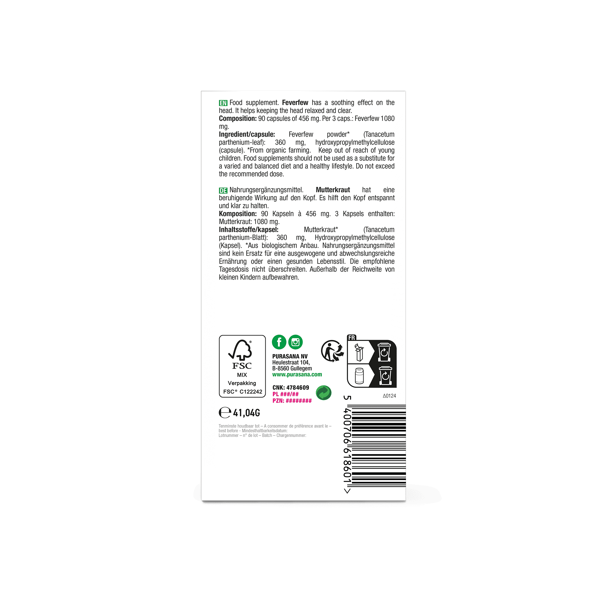 Een gevarieerde, evenwichtige voeding en een gezonde levensstijl zijn belangrijk. Een voedingssupplement is geen vervanging van een gevarieerde voeding.