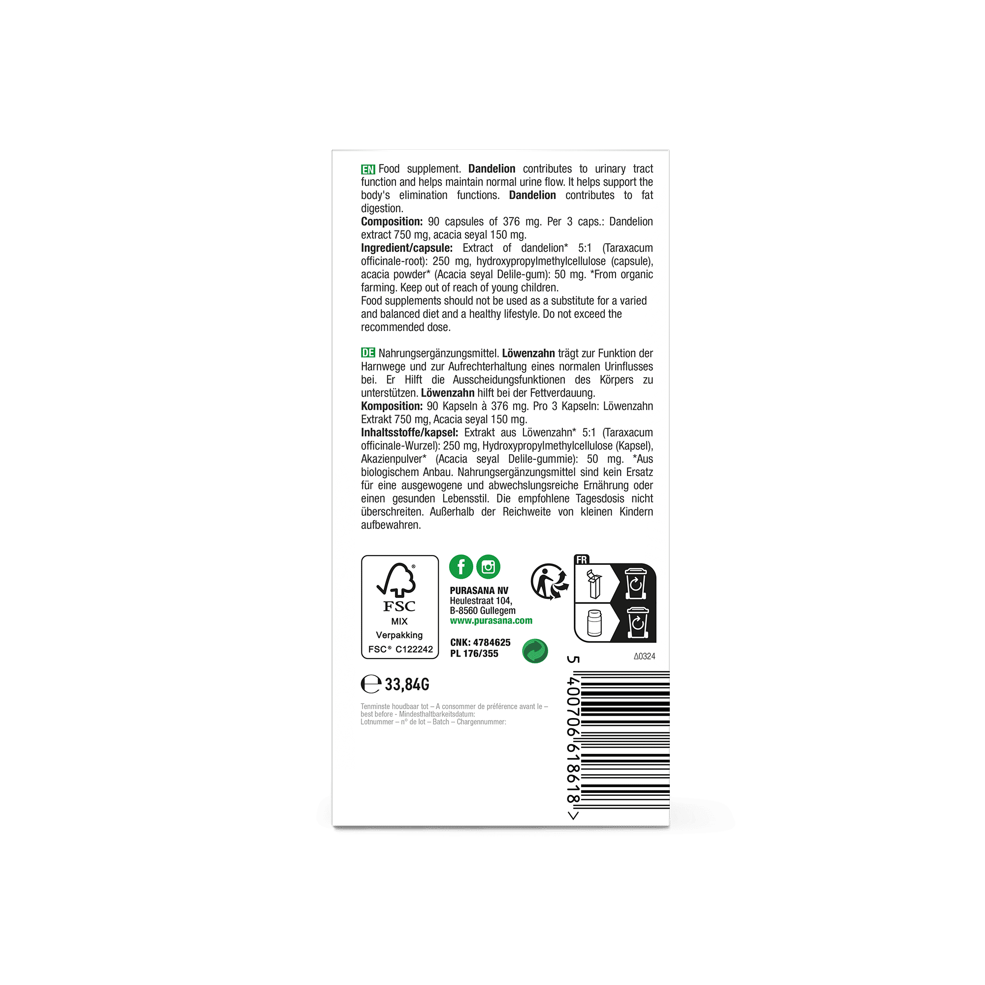 Purasana Paardenbloem vegan bio