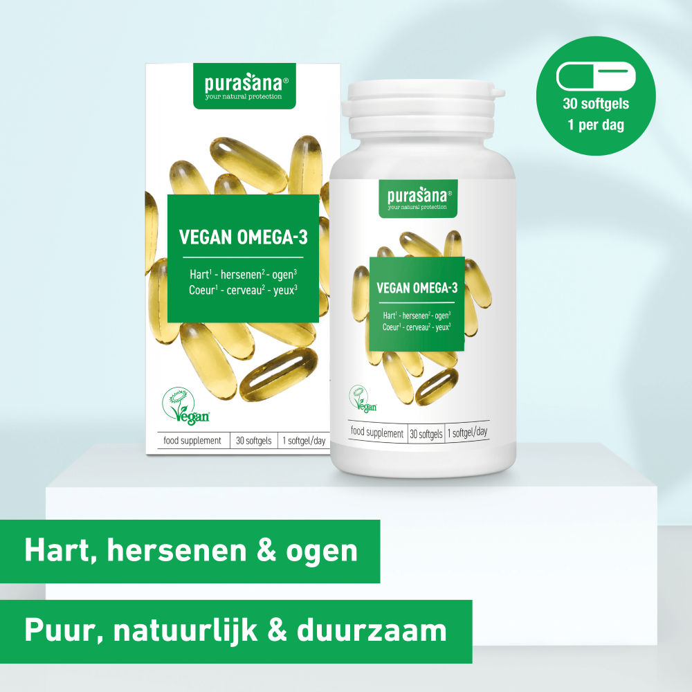 De vegan omega-3 softgels leveren de omega-3 vetzuren DHA en EPA in een optimale verhouding van 3:1.
