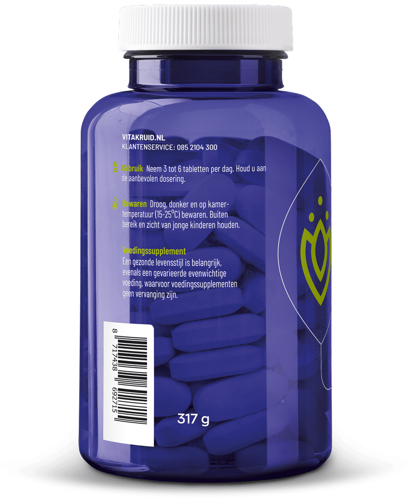 Een gevarieerde, evenwichtige voeding en een gezonde levensstijl zijn belangrijk. Een voedingssupplement is geen vervanging van een gevarieerde voeding.