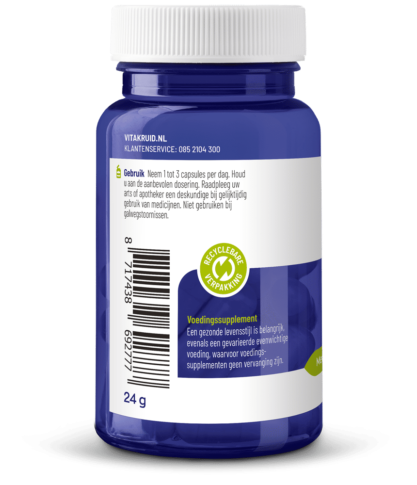 Een gevarieerde, evenwichtige voeding en een gezonde levensstijl zijn belangrijk. Een voedingssupplement is geen vervanging van een gevarieerde voeding.