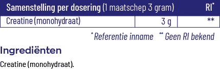 Creatine is een stof die van nature in ons lichaam voorkomt. We kunnen het deels uit voeding halen, maar ons lichaam kan het ook aanmaken uit de aminozuren arginine, glycine en methionine. De hoeveelheden die we in voeding terug vinden zijn relatief laag. Ter vergelijking: 1 maatschep Creatine Monohydraat bevat 3 gram creatine. Hiervoor zou je dus elke dag 300 gram haring of wel 700 gram rundvlees moeten eten.