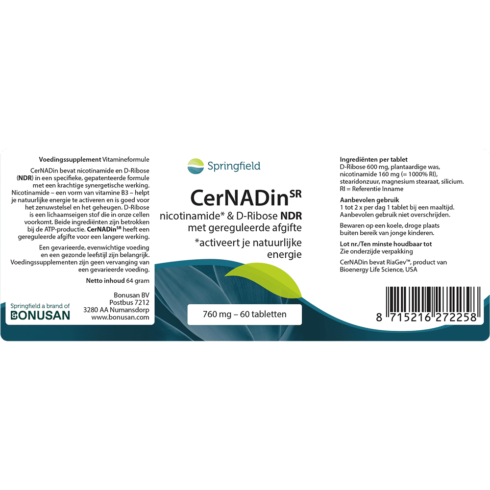 Springfield Cernadin SR nicotinamide & D-ribose 760mg