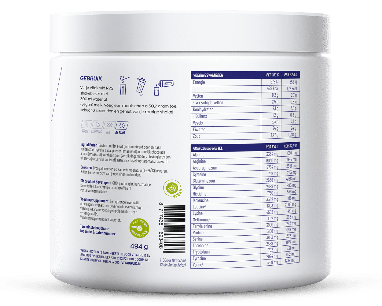 Vitakruid Vegan Protein fermented by Shiitake - Chocolade hazelnoot