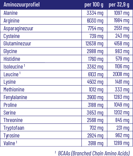 Aminozuurprofiel per dosering (1 maatschep à 32,9 gram) | |