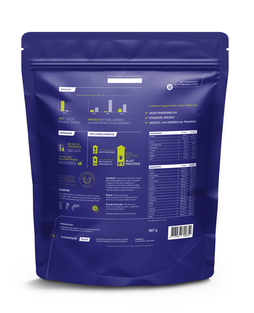 Krijg jij onvoldoende eiwitten binnen of wil jij als fanatiek sporter je eiwitinname ondersteunen? Met Vegan Protein kun je een heerlijke, romige plantaardige eiwitshake maken. Per shake krijg je 24 gram hoogwaardig eiwitten binnen.