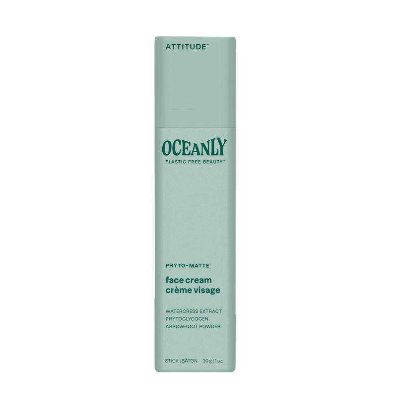 PHYTO-MATTE gezichtscrème zonder parfum uit Oceanly's plasticvrije ATTITUDE assortiment wordt geleverd in een biologisch afbreekbare papieren tubeverpakking uit duurzaam beheerde bossen om de huid te stabiliseren en tegelijkertijd zorg te dragen voor het milieu.