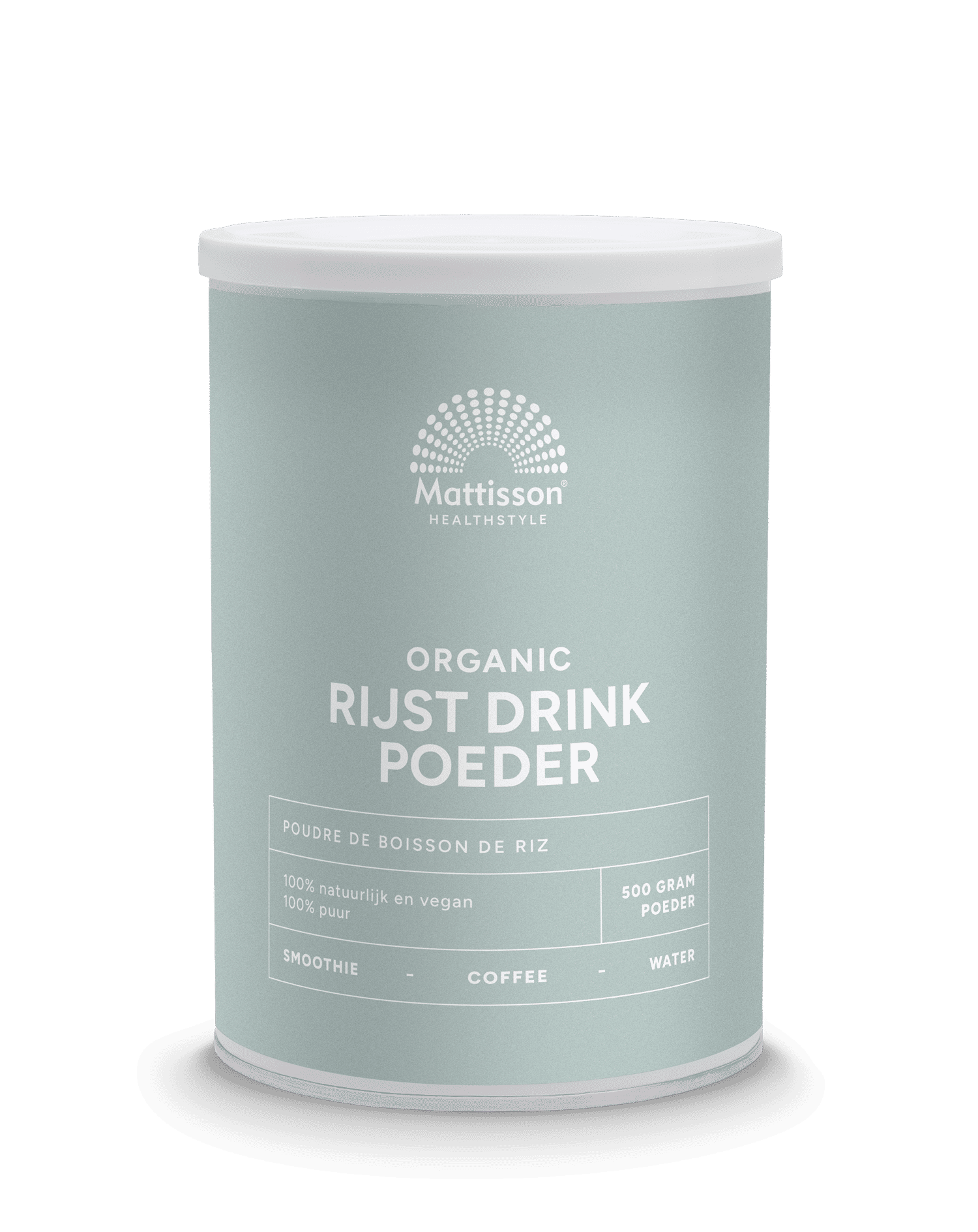 Mattisson biologische rijstdrinkpoeder wordt gemaakt van de Oryza Sativa, een rijstsoort afkomstig uit Pakistan. Oryza Sativa behoort, net als alle andere granen, tot de grassenfamilie. Gedroogd rijstmelkpoeder wordt geproduceerd door rijst te verwerken tot vloeibare rijstmelk en deze vervolgens te drogen tot poeder. Dit proces verloopt in verschillende stappen: de rijst wordt schoongemaakt, geweekt, nat vermalen tot vloeibare rijstmelk, gefilterd, verdampt, gehomogeniseerd om de vetten en water gelijkmatig te verdelen en zo de stabiliteit van het eindproduct te verbeteren, en ten slotte gedroogd door sproeidrogen. Hierbij verdampt het resterende water snel, waardoor fijne rijstmelkpoederdeeltjes overblijven.