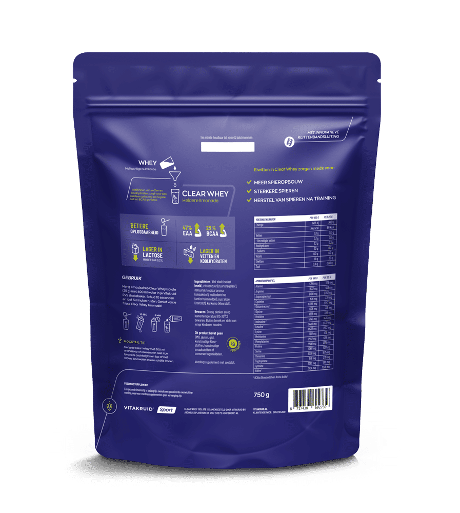 Dankzij het hydrolyseren van de eiwitten verbetert ook de oplosbaarheid van Clear Whey aanzienlijk. Je shakebeker een paar keer schudden en je hebt een heerlijk heldere eiwitlimonade!