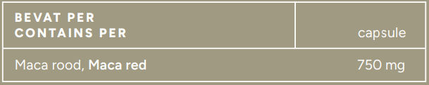 Maca is een knolgewas afkomstig uit het Andesgebergte in Peru en de enige eetbare plant die op deze hoogte (3000-4500 meter) groeit. Maca wordt ook wel de ‘Ginseng van de Andes’ en ‘Mood food’ genoemd. Het werd door de Inca’s gebruikt en vooral beschouwd als een lekkernij door de zoete smaak. Maca is te verkrijgen in 3 kleuren: geel, rood en zwart. Het unieke voedingsprofiel van rode maca maakt het erg geschikt voor mensen (vooral vrouwen) die een natuurlijke manier zoeken om hun dagelijkse voedingsinname te ondersteunen.
