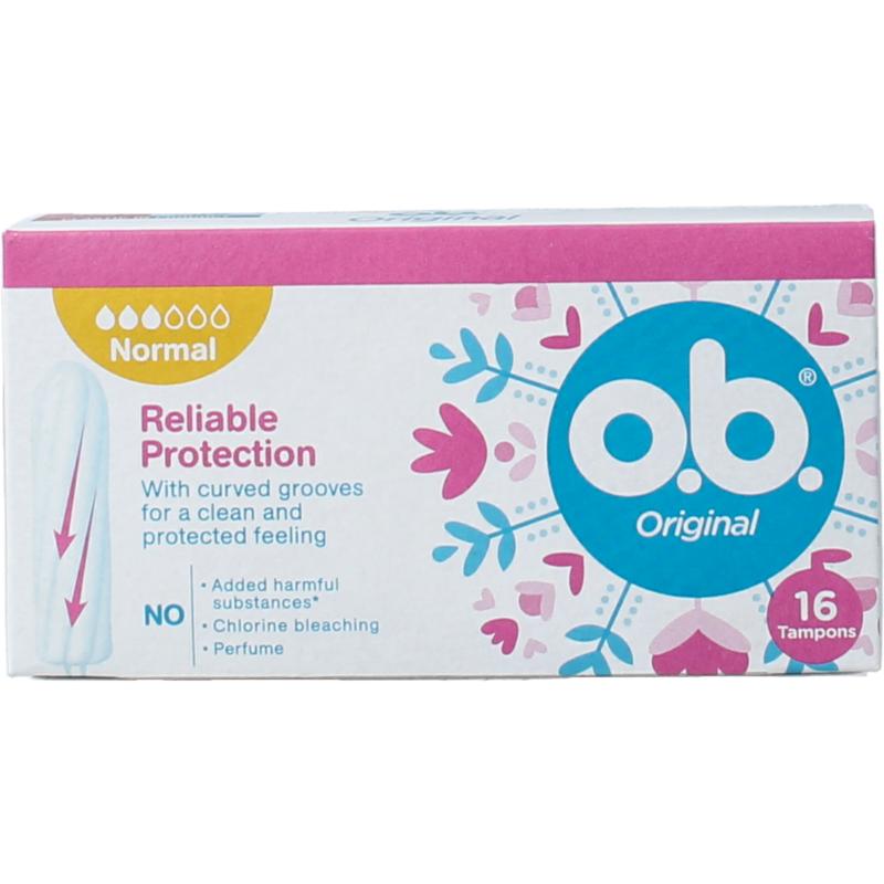 o.b.® Original biedt betrouwbare bescherming. Met gebogen groeven voor een schoon en beschermd gevoel.