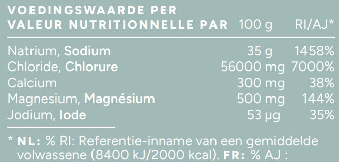 100% Natuurlijk Keltisch Zeezout gewonnen uit zoutmoerassen op kleibodem. Natuurlijklicht van kleur, ongewassen, ongeraffineerd en gedroogd om het makkelijker vermaalbaar te maken