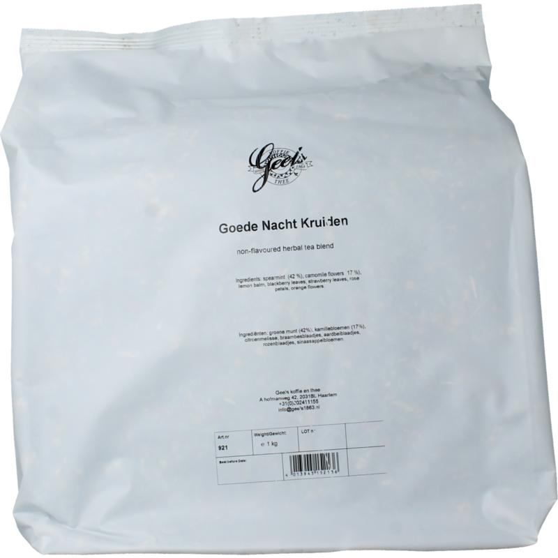 Kruizemunt, kamillebloesem, citroenmelisse, bramenblad, aardbeiblad, rozenbloesem, sinaasappelbloesem