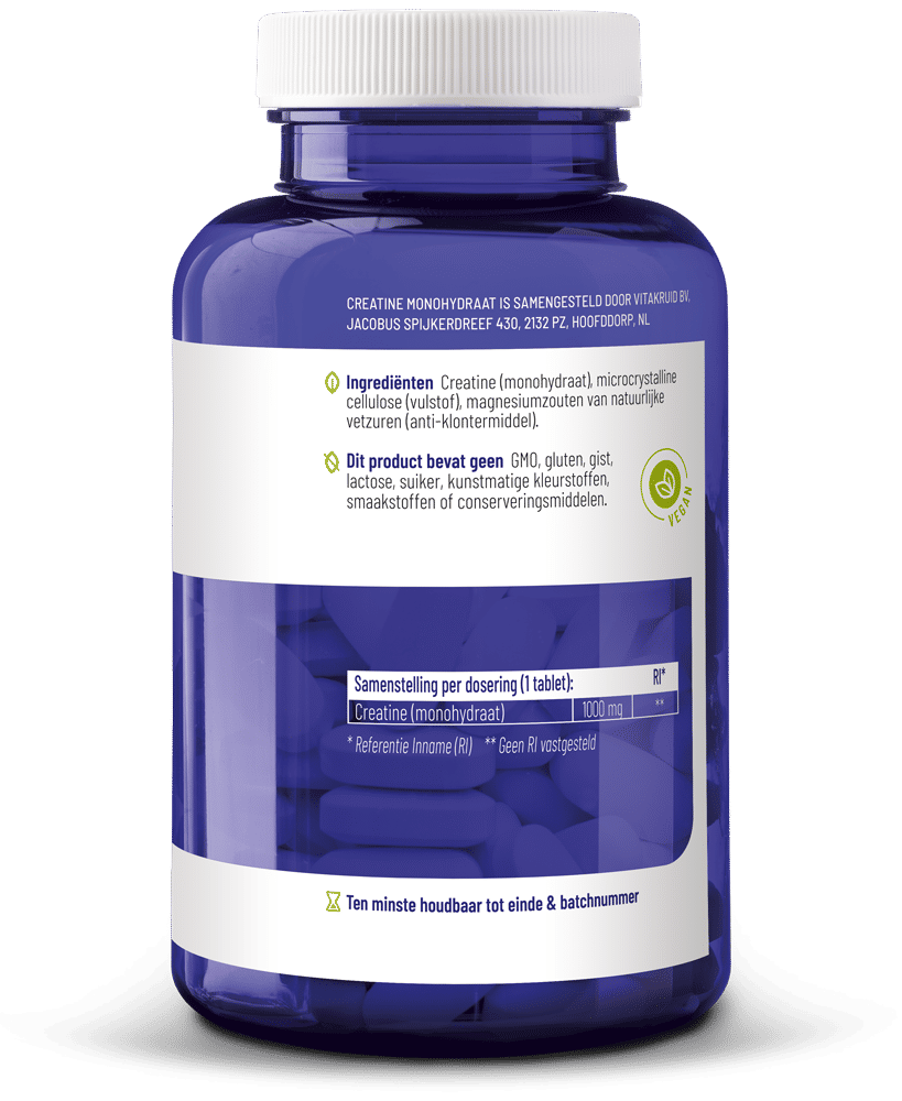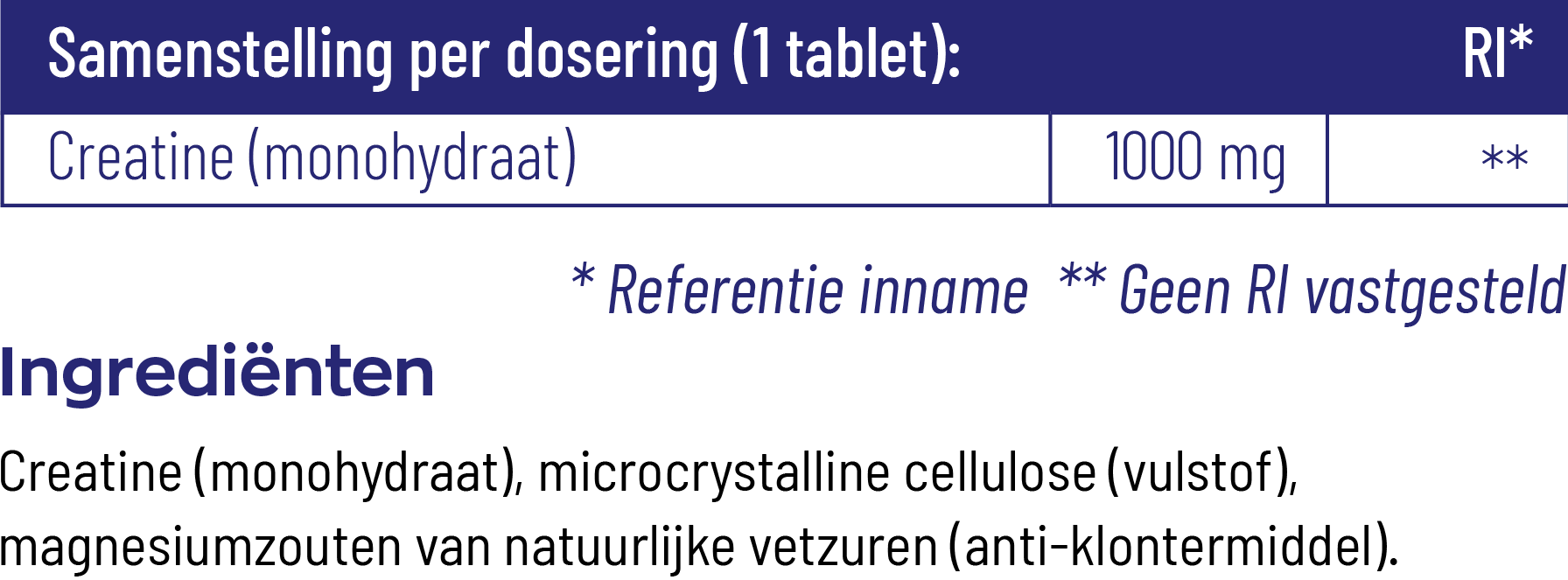 Hierdoor profiteer je van dezelfde wetenschappelijk onderbouwde voordelen, maar met het gemak van een tablet. Ideaal voor iedereen die zijn creatine-inname eenvoudig en nauwkeurig wil doseren, zonder te hoeven mengen of afwegen.