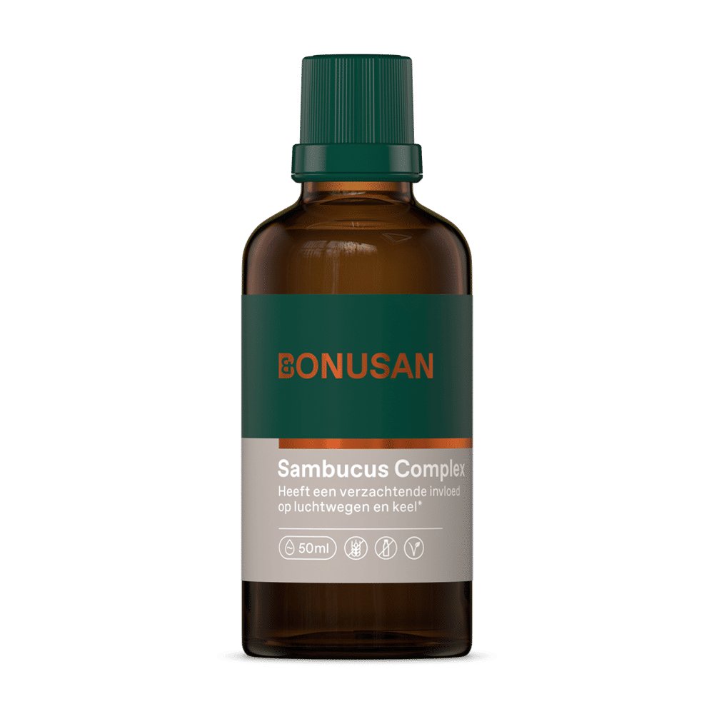 Sambucus nigra, Chamomilla recutita, Thymus vulgaris. Alcoholgehalte 70% v/v.