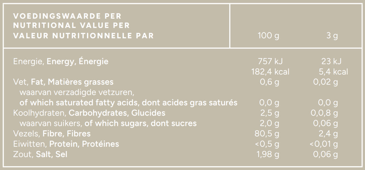 waarvan verzadigde vetzuren | 0,0 g | 0,0 g |