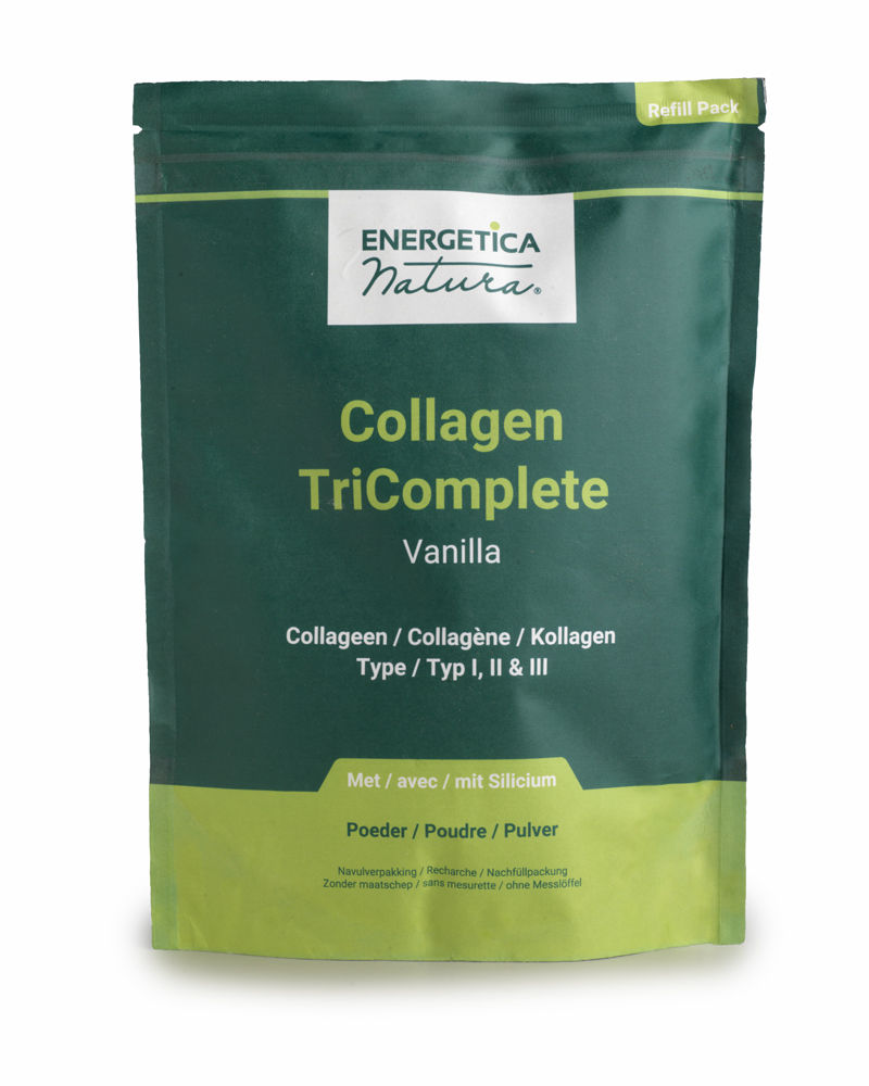 Collageen hydrolysaat (rund), runderkraakbeen, Aroma: vanille, vitamine C, zinkgluconaat, siliciumdioxide, vitamine E, mangaangluconaat, biotine, Antiklontermiddelen: calciumacetaat; microkristallijne cellulose; hydroxypropylcellulose