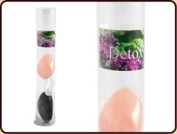 Transparante koker met een Bergkristal, een Roze kwarts en een Amethist trommelsteen erin. De stenen brengen het water energetisch in balans.