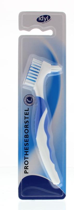Idyl protheseborstel is ontwikkeld voor het eenvoudig en grondig reinigingen van een kunstgebit of gebitsprothese. Het speciale handvat zorgt voor een extra goede grip. De grote borstelkop is voor de reiniging van grote oppervlaktes. Met de kleine borstelkop kunnen de moeilijk bereikbare plekken worden gereinigd. de borstelharen van de idyl protheseborstel zijn van goede kwaliteit.