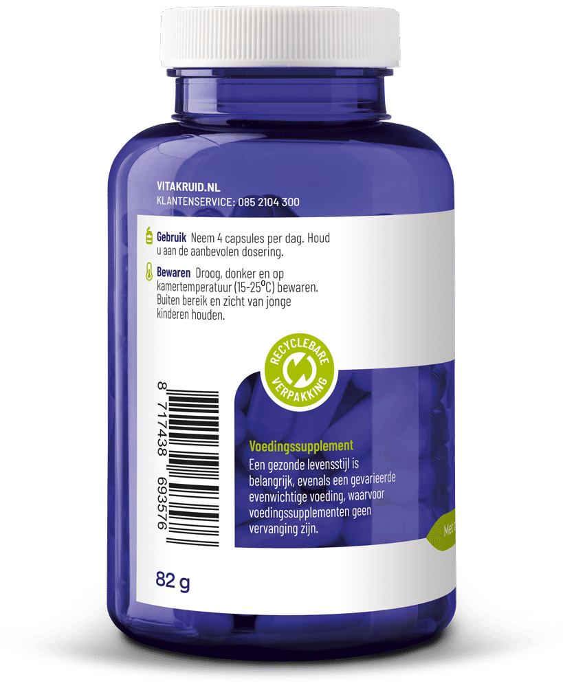 Een gevarieerde, evenwichtige voeding en een gezonde levensstijl zijn belangrijk. Een voedingssupplement is geen vervanging van een gevarieerde voeding.
