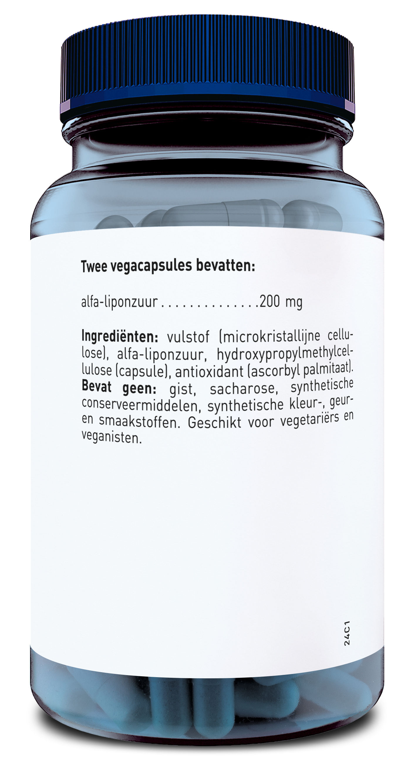 Rijstmeel, alfa-liponzuur, rundergelatine, antiklontermiddel (magnesiumstearaat, siliciumdioxide).