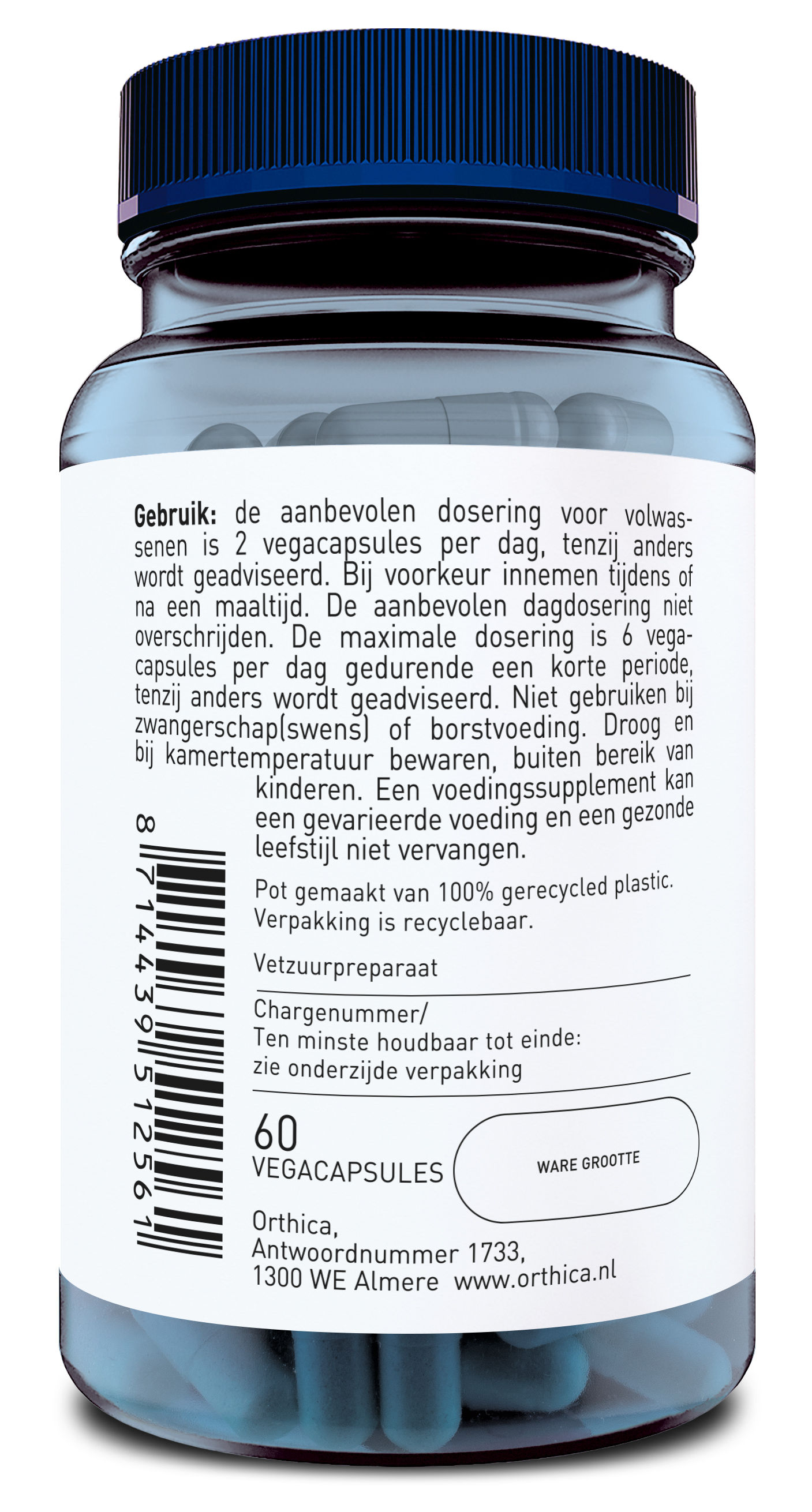 Een gevarieerde, evenwichtige voeding en een gezonde levensstijl zijn belangrijk. Een voedingssupplement is geen vervanging van een gevarieerde voeding.