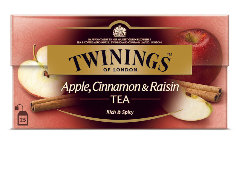 Zwarte thee, aroma's van gekruide appel (10%), sukjes appel (1%), kaneel (1%), rozijnenaroma.
