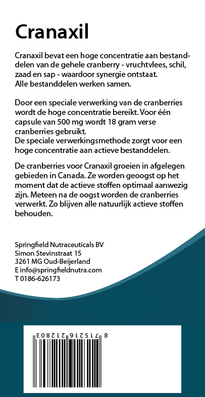 Cranaxil is bijzonder vanwege de hoge concentratie aan bestanddelen van de gehele cranberrybes - vruchtvlees, schil, zaad en sap. Alle bestanddelen blijven in hun natuurlijke verhouding, waardoor er synergie is.