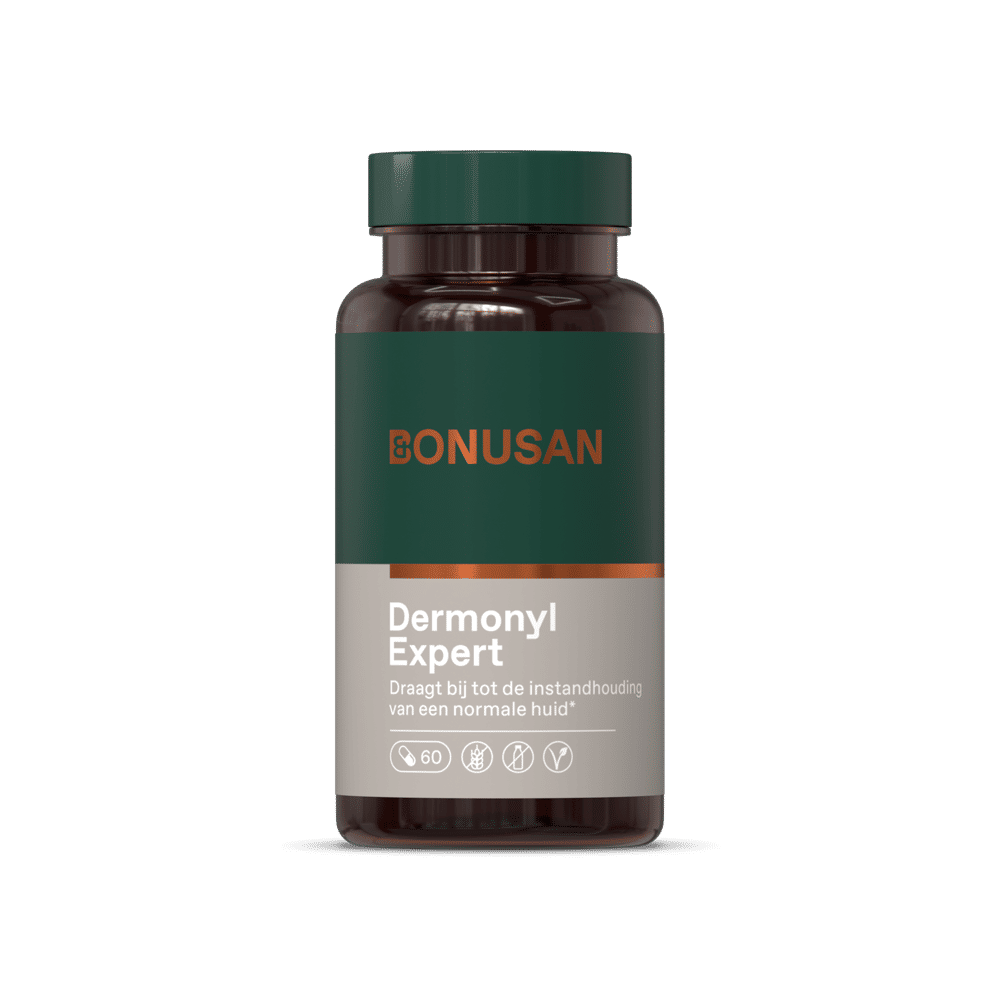 Dermonyl verzorgt huid, haar en nagels van binnenuit dankzij zink, selenium en biotine. De extra vitaminen A en C in dit product zorgen ervoor dat deze nutriënten nog beter hun werk voor u kunnen doen.