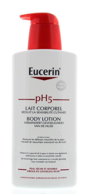 Eucerin pH5 Bodylotion is een milde, maar doeltreffende bodylotion die specifiek is ontwikkeld voor de behoeften van de gevoelige lichaamshuid. Deze bevat pH5-enzymbescherming waarvan klinisch is bewezen dat deze de huideigen enzymen activeert. Door de natuurlijke afweer van de schrale huid van binnenuit te versterken, helpt deze formule bij het herstel van de pH-waarden, ondersteunt regeneratie en vult tot wel 24 uur lang de huideigen vochtopslag aan. Er is ook aangetoond dat deze de penetratie van pollen in de huid voor 90% voorkomt en is daarom geschikt voor gebruik op een door allergie aangetaste schrale huid. Dankzij dexpanthenol heeft de formule wondgenezende eigenschappen.